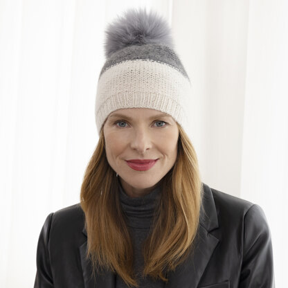 String Charlotte Hat is a fun twist on a classic! Worked in two colors of Geneva, the finished hat is turned inside out and finished with a pompom. Geneva is a lightly spun blend of cashmere and lambswool that works up into stunning garments and accessories.