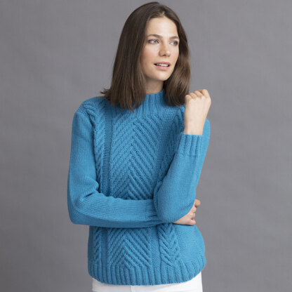 Three different cables adorn the front of this modern take on a traditional classic in the Christina Chevron Pullover by Lidia Karabinech.