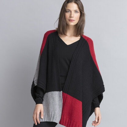 The Gwen Colorblock Ruana by Lidia Karabinech is a "statement" piece that strikes a balance between luxury and function. This piece can be worn in a multitude of ways: loosely draped across the shoulders, thrown over one shoulder, fastened at the front, or as an accessory over a coat.