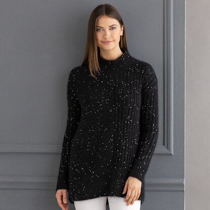 Be a showstopper in the Joanna Pullover. This luxurious design is a drop sleeve pullover with a mock neck and directional stitch detail in the body. The combination of String Blossom and Sesia Bluebell create an unbelievably soft fabric with amazing shimmer. The sweater is knit in pieces and then seamed.