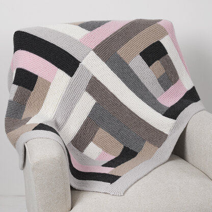 String Jordan Blanket is a fun and colorful project made of four log cabin squares that are seamed together. Each log cabin square begins with a small center square, and the work is rotated 90 degrees. Each progressive strip is built off the side of the previous one until you have a large square. A single color border finishes the blanket. Knit in 7 colors of Classica, Jordan Blanket will be an heirloom piece.