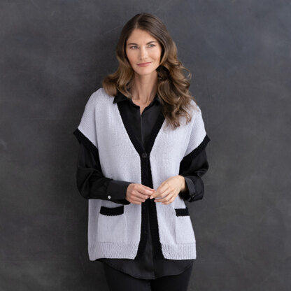trims, a v-neckline, and dropped shoulders. Lennon is knit flat in pieces from