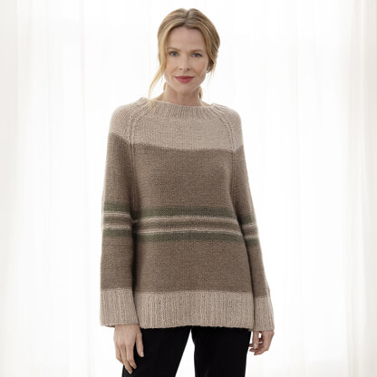 Part sweater-part poncho, Noro Swancho from String is the perfect layering piece for fall and winter. The striped garment is knit in pieces from the bottom up and seamed. Geneva, a worsted weight blend of cashmere and wool, creates a stunningly lightweight fabric. Use the colors shown or choose your favorites for your own unique look.