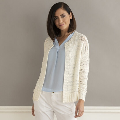 Knit the perfect lightweight layer with the Patti Cardigan pattern in Breeze. Eyelet stitches create a pattern that’s airy but not too open. The sweater body is knit in one piece up to the armholes and then divided for the back and fronts. The border is picked up and then knit in a rib pattern.