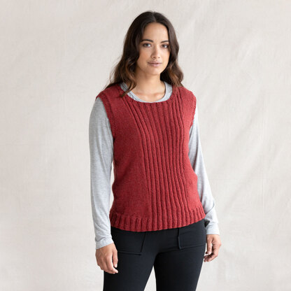 String Riley Vest is the classic piece every wardrobe needs! The vest is knit in two pieces from the bottom up and seamed, with three-needle bind-offs joining the shoulders. Ribbed panels along the center front and back give a figure-flattering look. Geneva, a gorgeous worsted weight blend of cashmere and wool, gives this vest subtle texture.