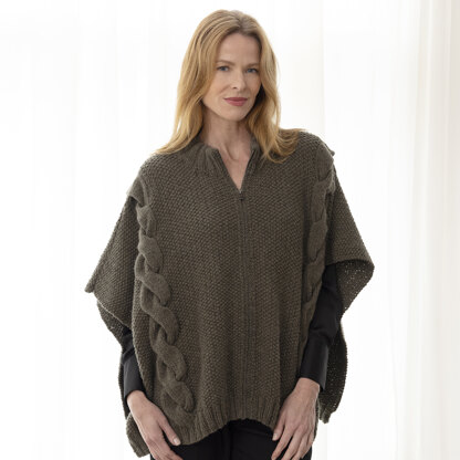 String Sydney Cape is a gloriously textured topper featuring thick cables, ribbing, seed stitch, and a zipper. The topper is knit in pieces from the bottom up and joined with a three-needle bind-off. String Dolcetto is a stunning blend of cashmere and Merino wool that works up into warm and luxurious garments. - Note: Stitch patterns are written only.