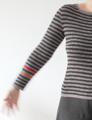 Stripes Ahoy! is a tailored pullover with a high, wide neckline, boatneck style, and set-in sleeves.