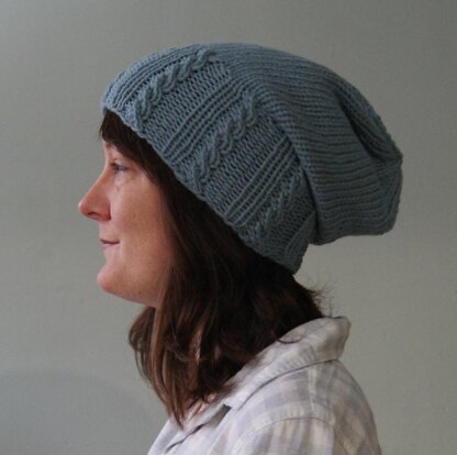 Stroll features a simple reversible cable and rib brim. The reversible stitch allows the brim to be folded over and worn as a fitted cap or left down and worn as a slouchy hat.