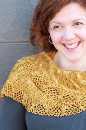 Nothing warms up a dreary winter day like the smell of a freshly-baked pie. Cozy up to this textured crescent-shaped shawlette that’s reminiscent of a homemade crust sprinkled with sugar. The shawlette is worked side to side up to the edging, when beads are threaded and added to the lengthwise border. Not only do the beads add sparkle and a nice weight that keeps the shawlette in place, they also help you keep track of where to work the first row of post stitches.