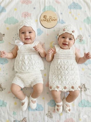 A pretty Tunic set, great for the summer. The Tunic can also be knitted longer to make a lovely lacey dress. The pattern provides the instructions to make all 4 pieces of this set, The Tunic is knitted from the top-down on straight needles and has line-by-line instructions making this set easy to knit.
