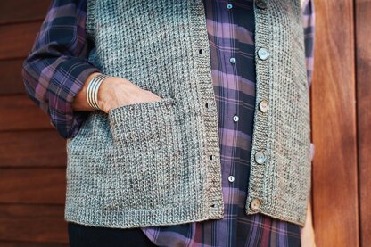 During this past summer I found myself regularly reaching for my light down vest to throw on foggy days. When I realized that it was the same "go to" piece that I wear all winter long, I wondered why I had never designed or knit a vest! So I set out to do just that.