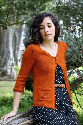 A lightweight cardigan with lovely autumn leaf lace insets on the upper back and pockets along with A-line shaping in the back to flatter your waistline. Sunlit Autumn is knit in pieces from the bottom up and seamed together at the end.