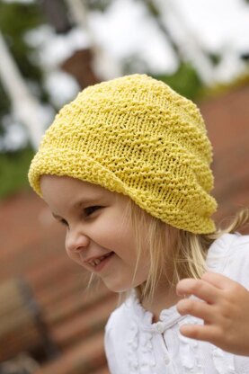 Simply sweet, this hat features a textured seed stitch stripe design. Its knit in the round from bottom up.
