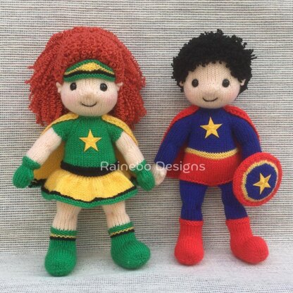 These Superhero Dolls are knit in the round, using Magic Loop or double pointed needles. The body, boots/legs, arms and head are all knit on as you go along. The clothes are not removable. They are approx. 13” tall and are created using #3-light wt. (DK wt.) yarn. The clothing and accessories can be used for either boy or girl Superhero. They will create lots of fun and adventure for a special someone! Approx. yardage: