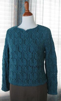 A combination of lace and diamond motifs, and a rustic yarn blend to create a feminine pullover with a sweetheart neckline and loads of charm.