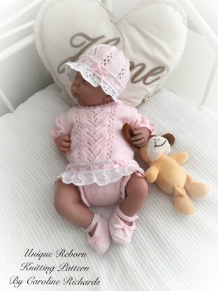 This beautiful Angel set knitting pattern is suitable for a 0-3 month old baby or a 16 - 22" Reborn doll