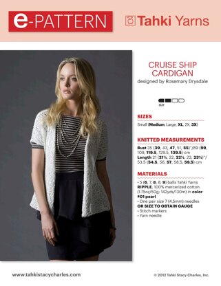 Tahki Yarns Cruise Ship Cardigan PDF is a Knitting pattern by Rosemary Drysdale, available as a Downloadable PDF. Super fun to make, this pattern could be your next masterpiece!