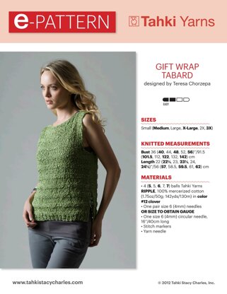 Tahki Yarns Gift Wrap Tabard PDF is a Knitting pattern by Teresa Chorzepa, available as a Downloadable PDF. Super fun to make, this pattern could be your next masterpiece!