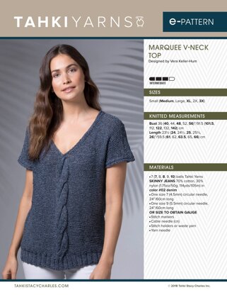 Tahki Yarns Marquee V-Neck Top PDF is a Knitting pattern by Vera Keller-Hum, available as a Downloadable PDF. Super fun to make, this pattern could be your next masterpiece!