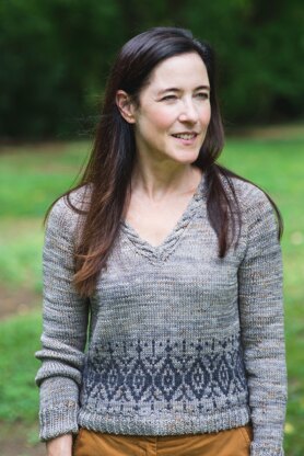 A lovely cabled neck band and pretty colorwork make for happy knitting! I made the sample with Emma’s Yarn Simply Spectacular DK with Nailed It as the main color, which is one of my all time favorites!