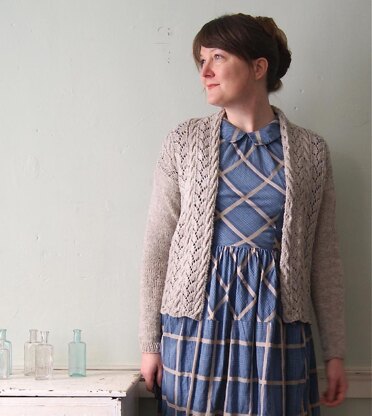 The sample shown was knit in Woolen-Spun Fingering Weight by Elsa Wool Company, shade Light Gray.