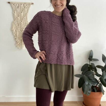 The Texture Plaid Pullover is a comfy everyday sweater. The body features a texture grid pattern worked with simple knit and purl stitches. I knit my sample in Knit Picks Billow cotton yarn, an incredibly soft yarn available in a variety of lovely shades. The easy, boxy fit of the Texture Plaid Pullover paired with the cozy cotton yarn makes for a truly soft and comfortable pullover!