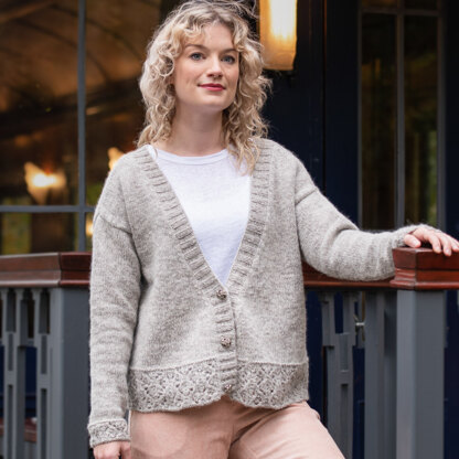 The Fibre Co. Chanson Cardigan from the Better Together Collection is a stunning relaxed women’s cardigan knit in Cirro and Cumbria Fingering held together for a spectacular tonal marled fabric. The sweater features dropped shoulders, a deep v-neckline, and a stunning lace pattern at the hem and cuffs. Cumbria Fingering is a blend of wool and mohair, and Cirro is a stunningly soft blend of Suri alpaca and Merino wool fibers wrapped around an organic cotton core. Together this makes a must-have sweater you’ll treasure for years to come. The lace patterns are charted and written out.