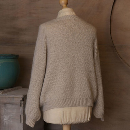 Yarn Requirements: 5 [5, 6, 7, 8, 8, 9, 10, 11] hanks The Fibre Co. Cirro (40% Suri Alpaca/ 40% Organic Cotton/ 20% Merino Wool; 50g/246yds) shown in Seraphic