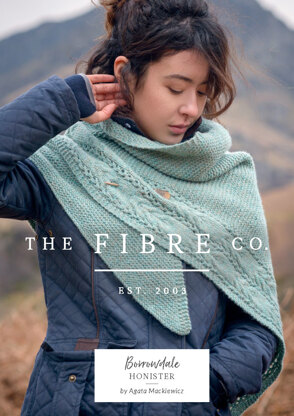 Swaddle yourself in squishy garter stitch and sophisticated cables. The Fibre Co. Honister is a simple, elegant shawl worked from the tip to the border, with plenty to keep your interest while knitting. Knit in The Fibre Co. Lore, it is the perfect accessory for crisp cold mornings. The Fiber Co. processes Lore in a mill in the historical textile region of West Yorkshire, England, and is made of 100% lambswool from Romney sheep. It is an honest woolen-spun DK-weight yarn that blooms into a beautiful knitted fabric after washing. The cable patterns are charted and written out.