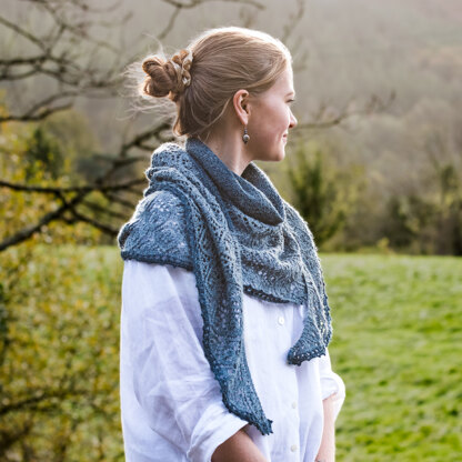 The Fibre Co. Lobelia from the Almanac Series is a stunning textured crescent-shaped shawl showcasing a floral-inspired lace border and lateral braid detail knit in Meadow. The accessory is designed for two shades and worked from the top down seamlessly, and the lateral braid divides the body and the lace border. Fibre Company Meadow is a lovely laceweight blend of four unique, luxurious fibers and is perfect for this piece. The lace border pattern is charted and written out.