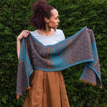 The Fibre Co. Mullein from the Almanac Series is a lovely rectangular wrap knit in Amble or Cumbria Fingering. The must-have and colorful scarf features a fabulous assortment of patterns. Mullein uses short rows in stripes mixed with openwork lace and bobbles to create a stunning project for newbies and advanced knitters alike. The accessory is knit flat and is created using four different pattern sections. The lace pattern is charted and written out.