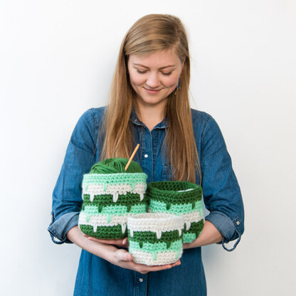 The Fibre Co Nestie Basket Bunch is a cute and useful set of decorative baskets perfect for holding everything from yarn while you work on your next project to notions or keys. Corral anything you need to contain with the Nestie Baskets and have fun picking our your favorite colors of &Make Super Bulky for them too! This thick single ply is made from highland wool and comes in a range of trendy colors that mix and match with ease. This pattern includes instructions for three sizes of baskets, with each crocheted in the round with a single crochet base and spike stitch sides. For an approachable project that leaves you with a handy accessory or thoughtful gift, the Nestie Basket Bunch is just the ticket!