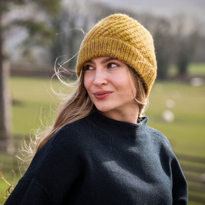 Orbital Hat from The Fibre Co. is a stunning unisex accessory with a folded double brim and a swirling pattern created with easy cables knit in Lore. The hat only requires one hank of yarn, making this perfect as a special gift to a friend or for keeping for yourself. Orbital is knit in the round from the bottom up seamlessly. The Fiber Co. processes Lore in a mill in the historical textile region of West Yorkshire, England, and is made of 100% lambswool from Romney sheep. It is an honest woolen-spun DK-weight yarn that blooms into a beautiful knitted fabric after washing. The cable pattern is in written form only.