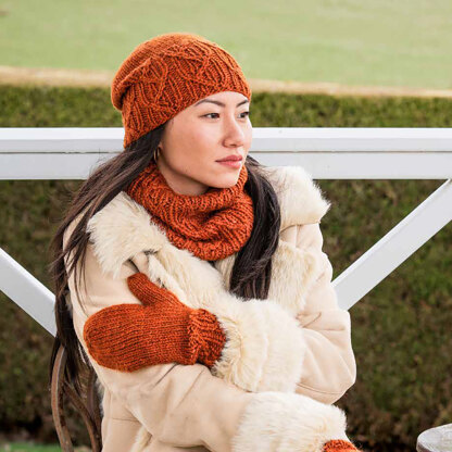 Sagittarius Set from The Fibre Co. is a fabulous set knit in Tundra. The collection consists of a beanie, a pair of mittens, and a cowl and makes a perfect quick-knit gift set. The set features a twisted traveling rib stitch pattern that looks intricate but is relatively easy to work. All three pieces are knit in the round from the bottom up seamlessly. Tundra is an incredibly soft, bulky weight alpaca blend in dazzling colors. The twisted traveling rib pattern is charted and written out.