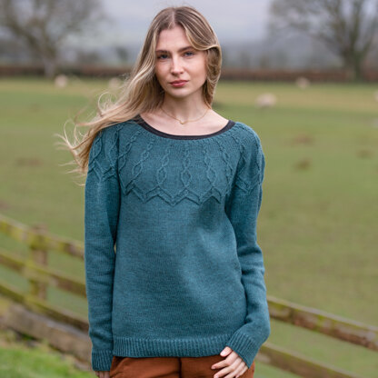 Yarn Requirements: 4 [4, 4, 5, 5, 6, 6, 7, 7] hanks The Fibre Co. Cumbria Fingering (90% Wool/ 10% Mohair; 100g/328yds) shown in 066 Windermere