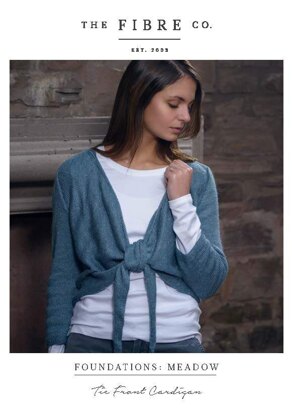 The Fibre Co.'s Tie Front Cardigan is a sweet layering piece that wraps you in the beautiful fabric that Meadow creates. Soft shapes are created by the tie fronts, worked sideways from the main body of the garment. The back is worked from the bottom up; the fronts are then picked up along the sides and worked sideways. The sleeves are worked flat and seamed for stability.