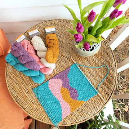 The Way Over Yonder Tapestry from The Fibre Co By Hook Collection II is a wonderful way to highlight your fiber crafts in your home. Simple to crochet worked in single crochet throughout, the Way Over Yonder Tapestry creates a beautiful scene that evokes the feel of a wide open horizon ready for adventure worked in four colors of Luma yarn. A sport weight blend of Merino wool, organic cotton, and linen, Luma has a soft feel and comes in beautifully heathered colors. Choose your favorite shades and create a focal point that showcases your crochet skills and brings warmth and color to your home. Colorwork pattern is both charted and written out.
