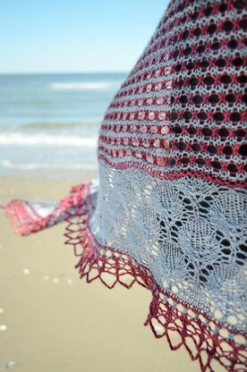 This crescent shaped shawl is delightfully soft in Old Maiden Aunt’s Merino Silk 4 Ply. The two color lattice gives way to a broad border of pretty lace leaves. Increases are worked on both right side and wrong side rows.