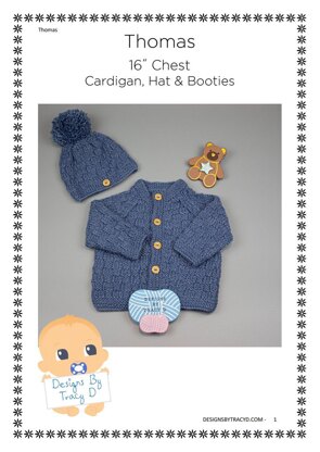 Thomas Baby Cardigan, Hat & Booties knitting pattern to fit 16" chest.
