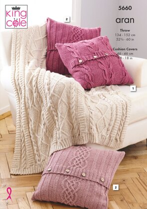 Throw & Cushion Covers in King Cole Forest Aran - 5660 - PDF