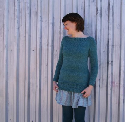 Worked seamlessly from the top down, in the round, and at 4 sts per inch, Tideline works up quickly and easily.