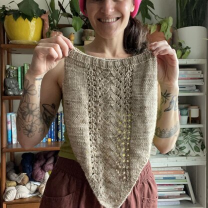 The Tilly Bandana is a simple, quick, and fun-to-knit bandana cowl. Knit from the bottom up, flat, for the bandana portion, it then transitions to being knit in the round to work the cowl section. The Tilly Bandana is a companion accessory to the Tilly Tee and Tilly Crop patterns and features the same lace stitch pattern.