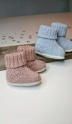 Tiny Heart Baby Booties, a cute gift for the cutest baby. The pattern includes sizes from newborn up to 12 months and has written descriptions for both knitted flat and in the round. The tiny heart pattern is made of purls stitches and is on both sides of the bootie.