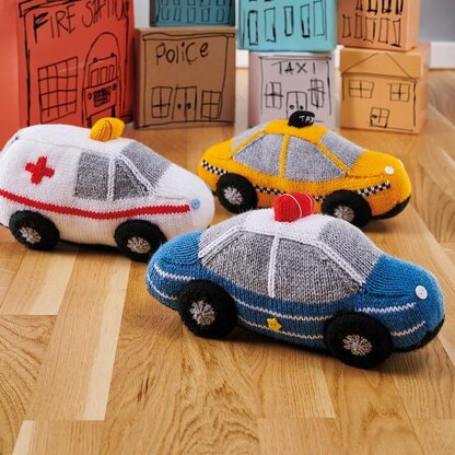 Car jams have never been so much fun! These super-squishy Toy Vehicles are easy to make and come with lovely simple details, and can also be used as little throw cushions. Designed by Amanda Berry @fluffandfuzz, the vehicles are knitted in acrylic DK yarns on single pointed needles (not in the round). With this knitting pattern you can make a yellow cab, a cop car and an ambulance. You can use this basic vehicle template to create a fleet of vehicles in different colours too. The window struts are added using Swiss darning (duplicate stitch), the ambulance uses intarsia colour-work, and the taxi stranded colour-work. For confident beginners and above, other techniques used include casting on and off, knits, purls, increases and decreases, and seaming to finish.