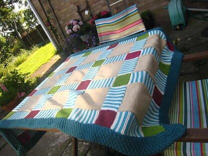 This is a lovely pattern to work with if you have mastered the basics of knitting and want to produce something substantial. It would also be a great design to use up your stash of oddments. Whilst I have produced a uniform colour scheme to make the sample blanket this would make a great challenge to produce something more random or eclectic.