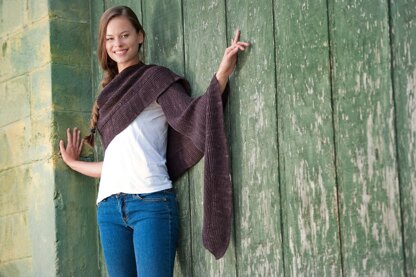 The Tree Rings Shawl is a long and narrow crescent shawl worked bottom up in cozy garter stitch with a pretty scalloped border. Worked side to side, the twisted ribbing in the border creates texture and depth and really shows off the colors in a semi- solid colorway of Yowza.