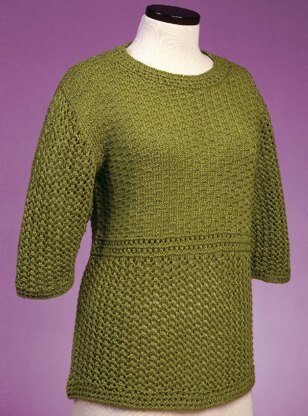 This pullover is worked from the bottom up in pieces, then sewn together.