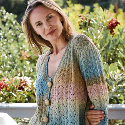Trendsetter Yarns Arrow Up Cardigan is a lacy v-neck cardigan with long sleeves and an allover eyelet pattern. This sweater is knit flat in pieces from the bottom up and seamed, providing structure to the drapey fabric. Pavlova is a summery blend of cotton and viscose with beautiful self-striping shades that have extra depth from the ways that the different fibers take the colors of the dye. Add color and coverage to any outfit even as the weather warms up with the Arrow Up Cardigan! Arrow lace stitch is written out only.