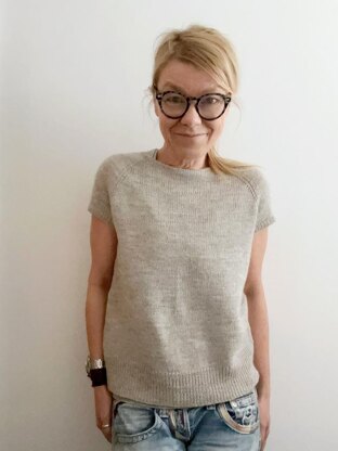 Tresoro is worked seamlessly in rounds from the top down. First some short rows are worked to shape the neckline. Raglan increases are then worked to the final yoke depth, where sleeve stitches are put on hold. From this point the body is worked in rounds down to the ribbing. The body could be either worked straight or with a light A-line shaping. Then sleeve stitches are picked up again to work the sleeves in rounds top down to the cuffs. An Italian bind-off for body and sleeves will add the perfect finishing touch to this classy raglan tee. No finishing required. Sample is worn with approximately 4" (10 cm) positive ease at bust.