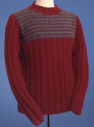 This pullover is worked from the bottom up in pieces, then sewn together. The yoke pattern is worked with one single color at a time, slipping any stitches not worked in the color you are currently working with. This makes it easy to work color into your knitting without working with 2 colors at a time.
